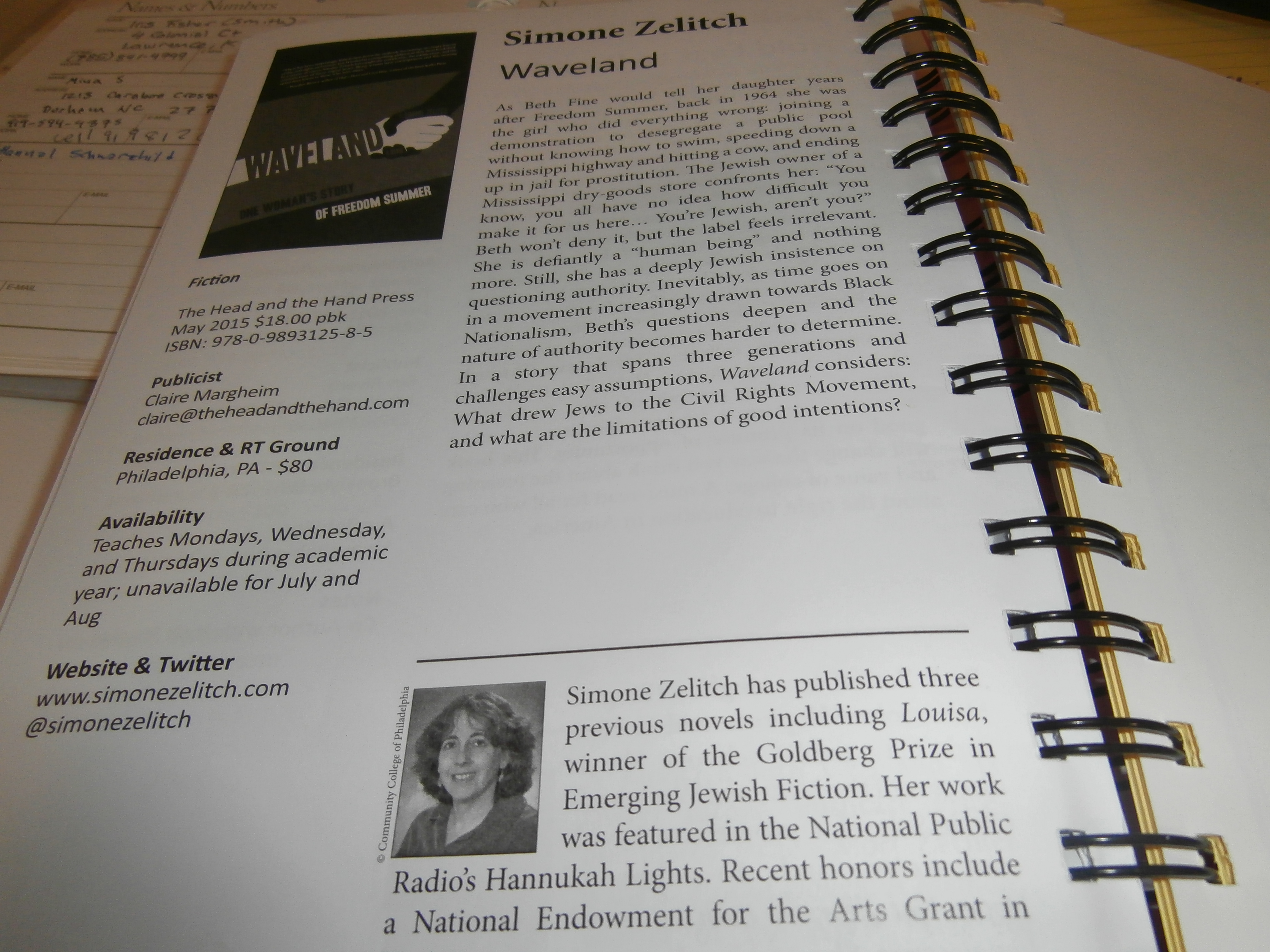 The hot-pink badges matched a hot-pink booklet with 230 titles, and fifty-some authors were on that afternoon. When we were shepherded into the chapel, we were told to look for seats where the booklets were turned to our pages. We would pitch in alphabetical order, and as a Zelitch, I was last.