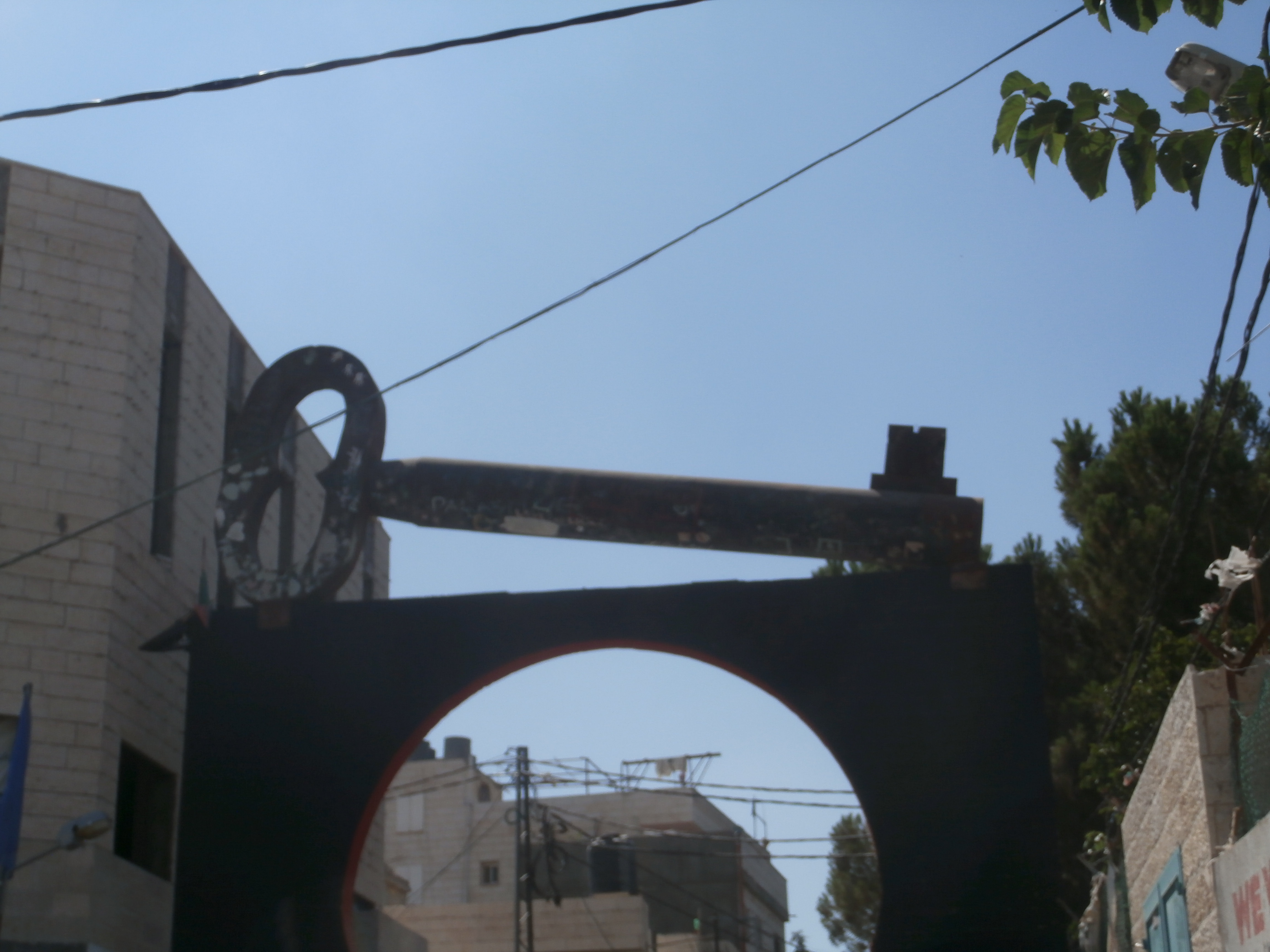 The next day, we’d leave for Bethlehem, where we’d watch a power point presentation from Lubnah Shomali of Badil, a resource center for Palestinian Residency and Refugee Rights; she told us that Palestinians were the largest and longest-standing displaced people in the world; 7.8 million total, including half a million who had left home for a neighboring village during the war, and were never allowed to return, the so-called “Present Absentees”  That same day, we’d visit the Lajee Center at Aida Refugee Camp.   Over its gate is a giant key, the symbol of Right of Return, a promise that one day the keys grandparents passed onto their children and grandchildren will open doors in Jaffa, Haifa, or doors of houses that have been leveled and reconstructed into Jewish homes.  Shatha Alazzeh, a beautiful girl with enormous, sad eyes, the camp’s Water Coordinator, said, “I am twenty-three years old and will never see the sea.”